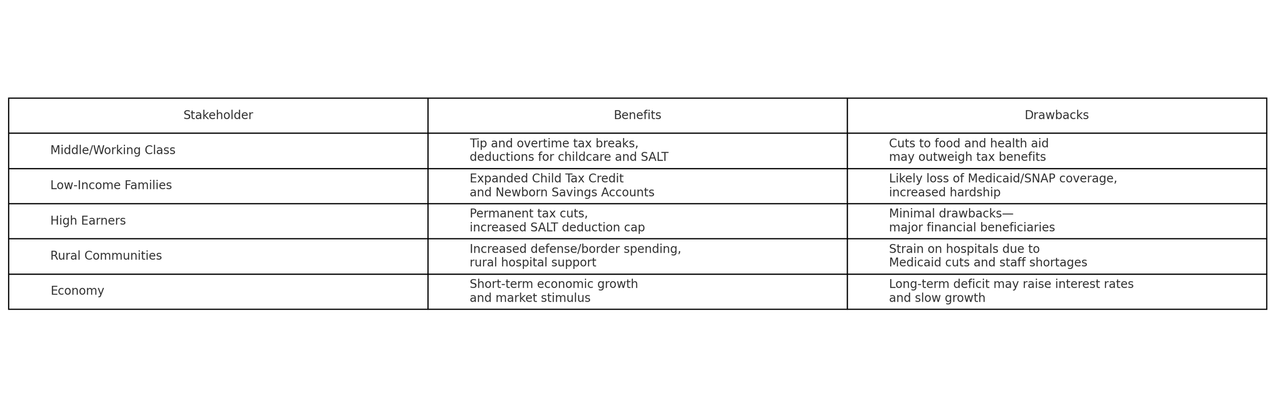 Figure: A visual summary of how different groups are impacted by the One Big Beautiful Bill—showing both the benefits and trade-offs.